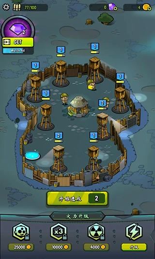 游戏特色:游戏界面干净直观,搭配新手引导,让玩家快速掌握核心操作。其具有 Q 版僵尸造型与明亮场景,搭配动态特效,带来轻松诙谐的视觉体验。游戏中还有多元道具系统,玩家可解锁 EMP 电磁脉冲瘫痪僵尸、核弹清屏等强力技能,搭配三倍攻击、精准射击增益,灵活应对尸潮。此外,玩家还能通过战斗收集宝石升级军队属性,解锁新型防御塔与科技。