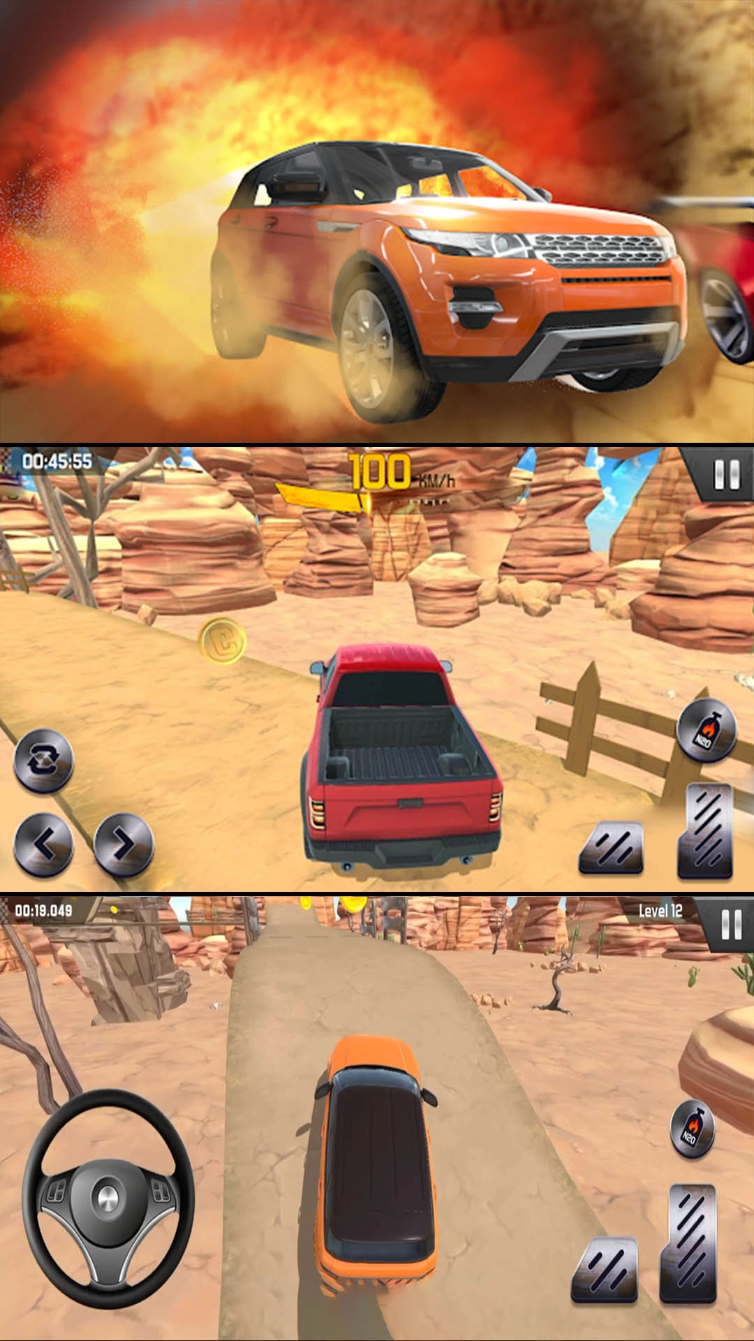 1.多关卡递进挑战:关卡按难度逐级提升,地形涵盖陡坡、碎石、泥泞与急弯,需应对连续变化的环境压力。