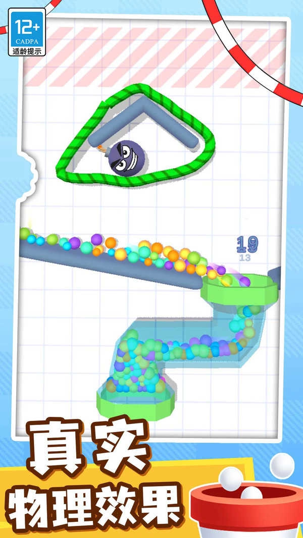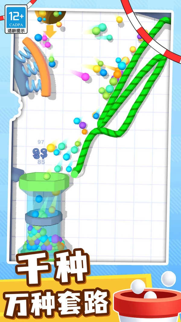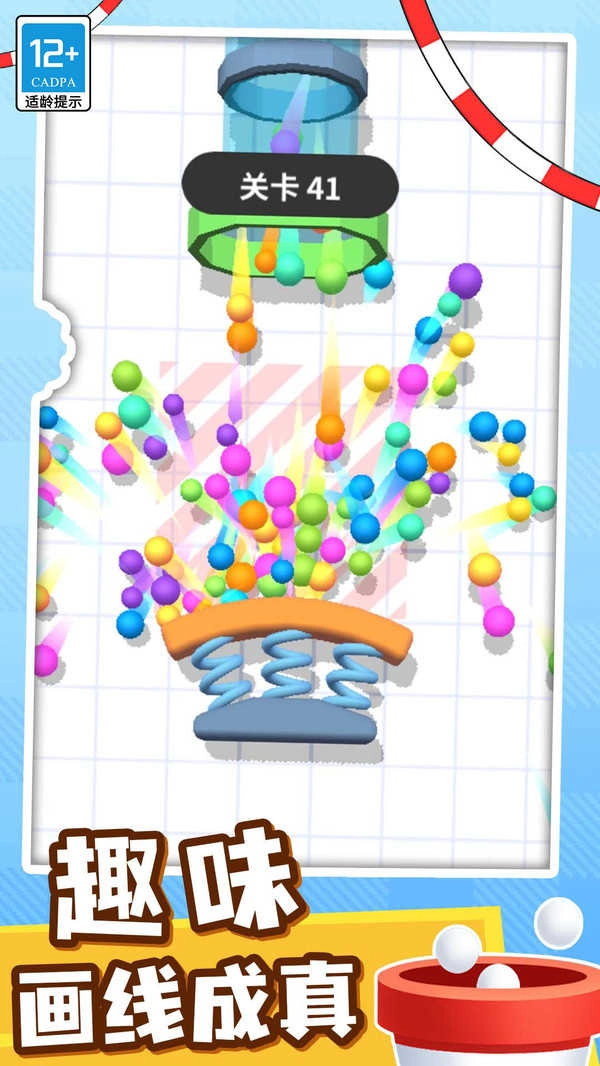 这是一款玩起来让人如此轻松舒适又解压的休闲游戏。运用你的逻辑思维与思考能力,观察各种奇特的障碍布局,接着只需动动手指,画出线路或挡板引导球球们精准抵达目标位置。真实的物理掉落效果,流畅的画线成真体验,来一起装杯吧!!