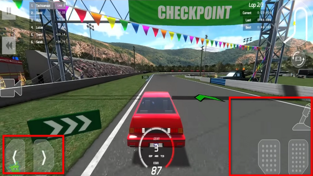左下角是左右移动,右下角则是油门和刹车。