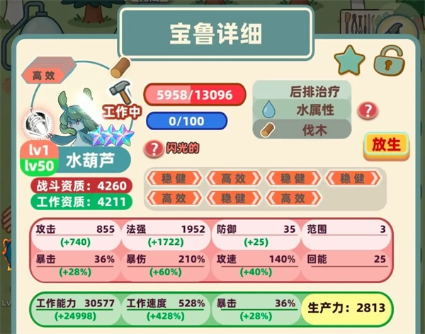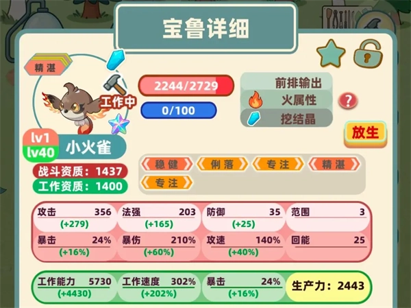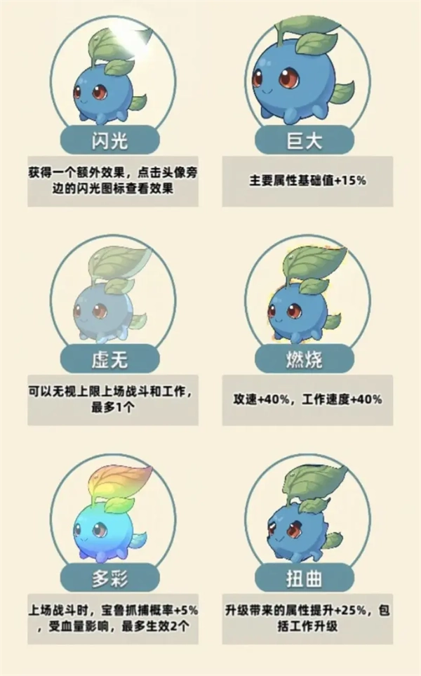 -燃烧:兼具战斗与打工功能的词条,是部分攻速型宝鲁的理想搭档,像燃烧鹿就很典型。