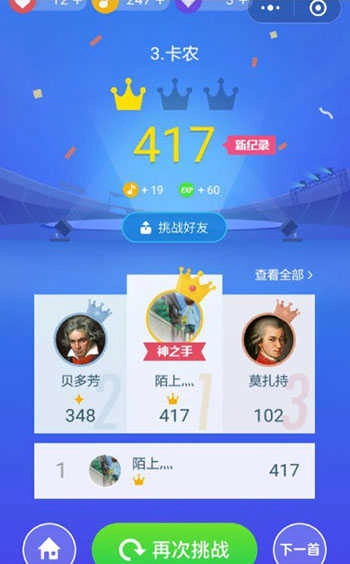 ③顺利完成歌曲演奏后,会进入一个抢金币的环节。紧接着是该乐曲的无尽模式——依旧是这首曲子,但钢琴键的下落速度会加快,对演奏者的反应能力要求也更高。