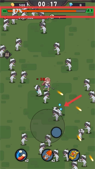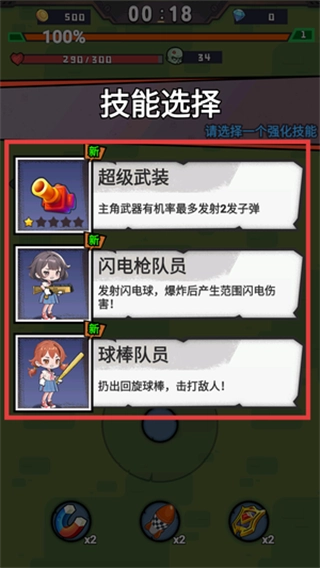 在战斗时,击败僵尸所获取的经验值能够帮助角色提升等级;每当等级提升五级,玩家就可以从三个随机出现的强化天赋里挑选一个来学习。