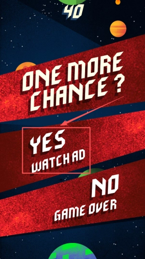 掉落后可以选择「YES」观看广告继续游戏,也可以选择「NO」结束当前游戏。
