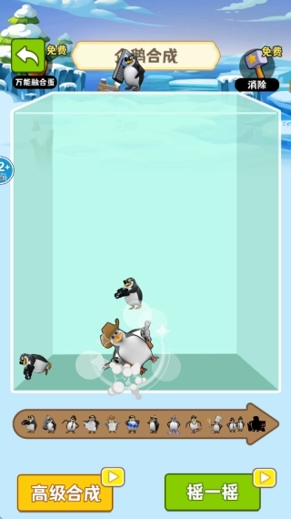 3.在企鹅合成模式里,轻点屏幕就能让画面上方的企鹅表情包掉落,相同的企鹅可以合并升级,持续合成升级来获取更高分数吧。