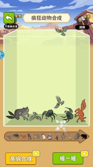 4.在疯狂动物合成模式下,玩家需依据动物的体型尺寸进行合成操作。需要注意的是,一旦动物将屏幕完全填满,挑战便会宣告结束!
