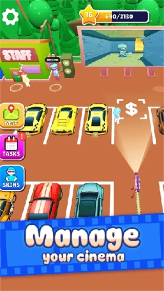 3.游戏的核心目标在于拓展影院的规模,提高星级评定,进而成为所在区域内最受大众喜爱的地标式汽车影院。