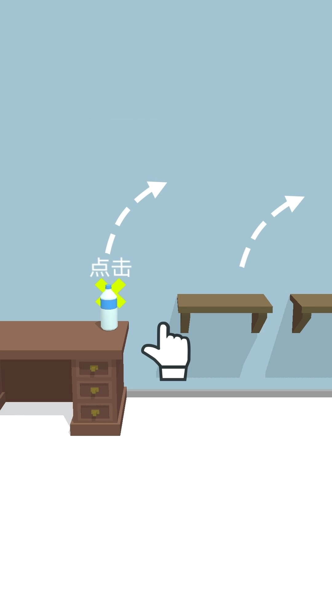 1、点击屏幕能让瓶子快速跳跃,玩家需掌握跳跃技巧,帮助瓶子顺利到达目的地。