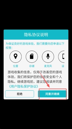1.初始配置:打开游戏后,点击“同意并继续”以确认隐私条款,就能进入主菜单页面。