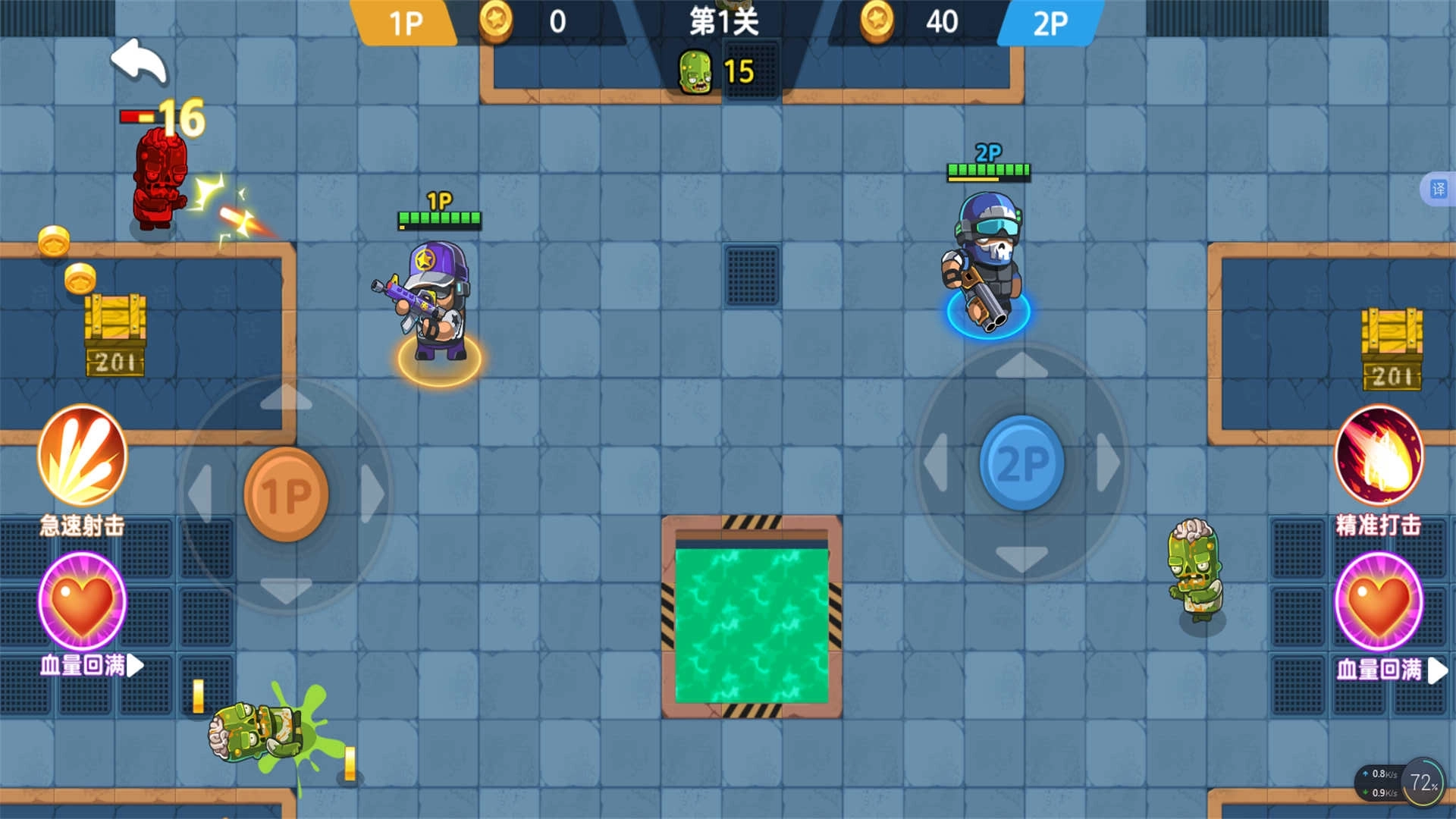 2、在关卡推进的过程中,要多留意地图的环境特点,学会利用周围的障碍物来躲避敌人的攻击;同时,主动寻找隐蔽的位置,既能用来恢复自身状态,也能借此伏击敌人,充分借助地形上的优势来扭转不利的战局。