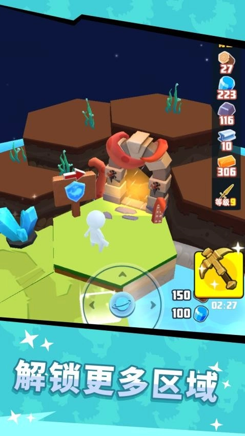 挖到的资源及时带回基地,用于升级工具和建设设施,提升能力后能探索更深区域,发现更多稀有宝物。