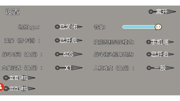 2、点击右上角的设置按钮,玩家能够对游戏音量、键位等各项设置进行调整;