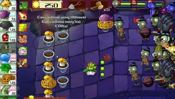 激昂:当场上僵尸数量突破20只时,攻击间隔将自动缩减50秒