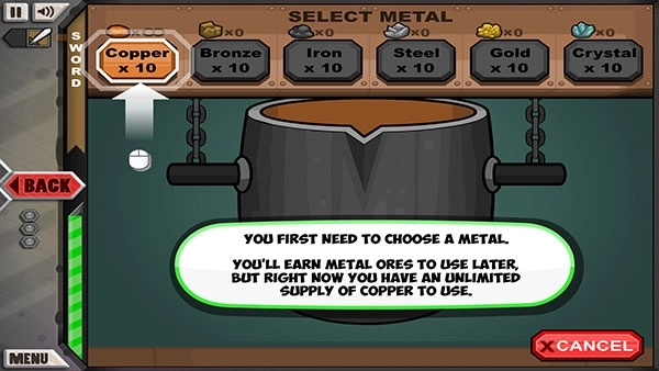 3、游戏设有简洁的新手引导,从创建存档、挑选材料到按压加火锻造,整个流程清晰明了,易于上手。
