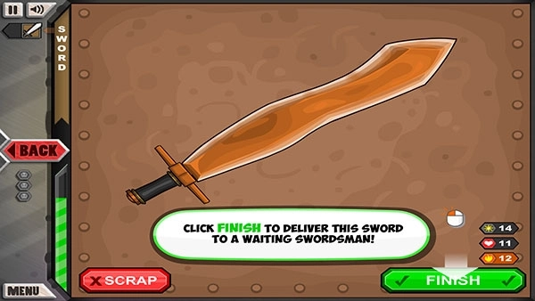 1、玩家需经营铁匠铺,兼顾武器成本与悬赏收益,并依据勇士的反馈来优化材料搭配。