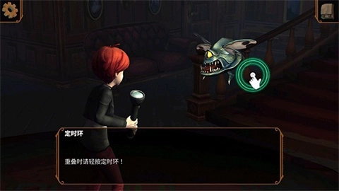 4、对话结束后,沉睡的鬼怪就会被唤醒,绿色圈是攻击手段,两个绿色圈重合时点击能更精准地命中怪物,不过怪物也会攻击主角。