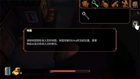 1、进入游戏后,主角被囚禁在鬼屋里,必须找到钥匙打开房间才能从这里逃出去。