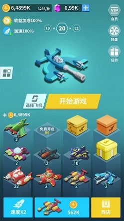 2、用最有趣的飞机冒险,射击不同的转快会有奇效哦!