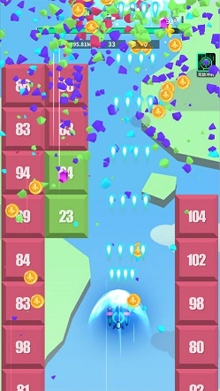 1、全民打方块是一款玩起来非常有趣的休闲闯关游戏,经典的竖版游戏模式,数量众多的方块在屏幕的正上方,玩家将操控着自己的飞机向上飞行,期间方块会不断的向下坠落,你则需要尽可能将所有的方块全部击碎,让它们一块都无法越过你的防线,由此获得高分和众多金币。当然想要玩好全民打方块免费是没有这么容易的,你需要充分运用你的策略。