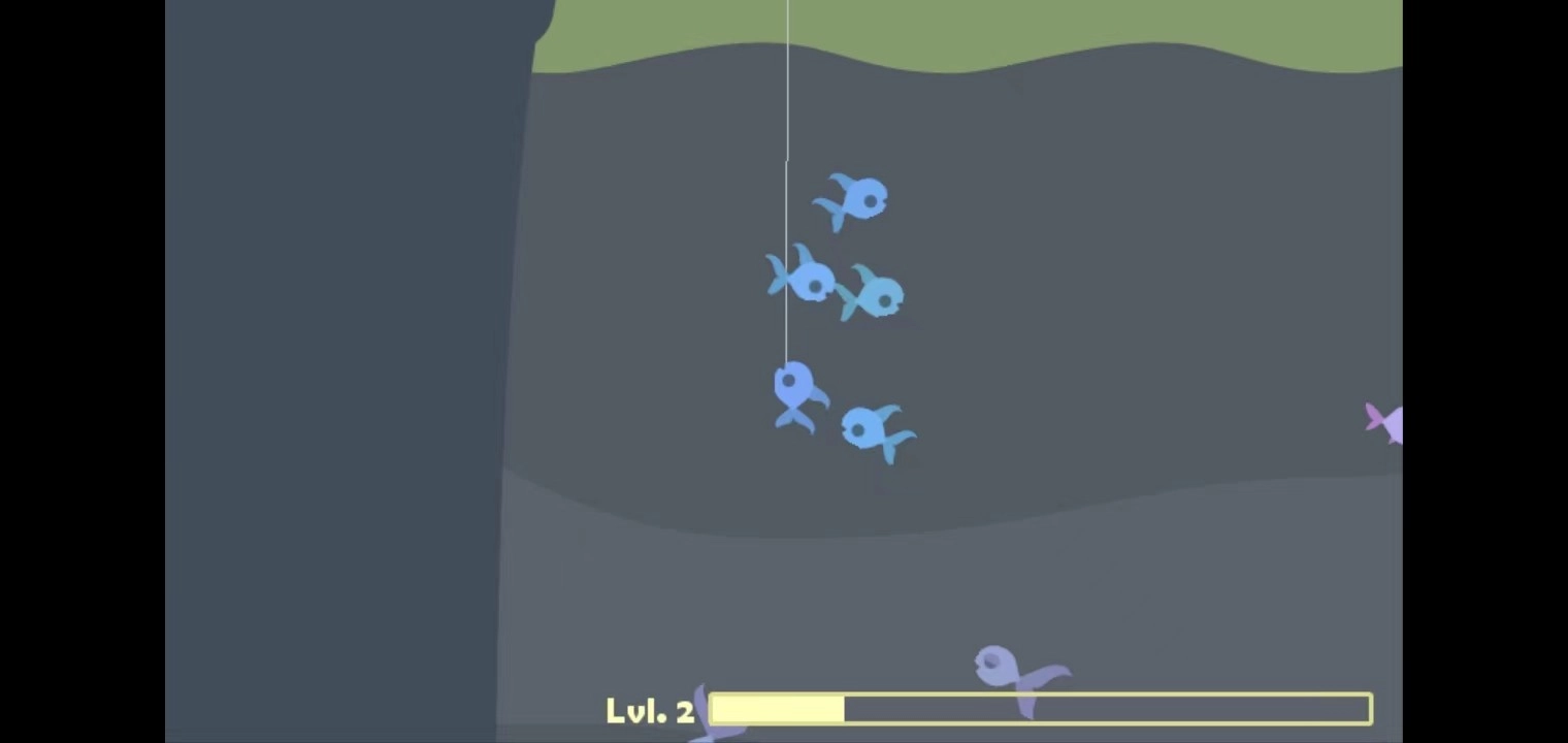 1、首先,玩家在本站并安装好游戏之后,打开进入,通过滑动手机屏幕,把鱼钩抛进水中钓鱼;(如果鱼钩没有抛进海里,那就多试几次)