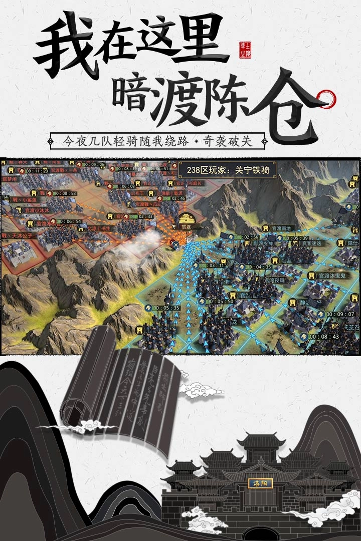 2、千万玩家在线激战,灵活调度部队,场外合纵连横,共同书写属于你们的乱世史诗。
