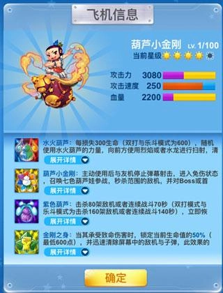 同时小编也推荐轰18,他拥有“电子力场”这一技能,可以稳定一些攒电子力场,等到后期轰18就非常厉害了,可以产生非常多的盾保证其续航,让其战斗更持久。当然乐斗模式最适合的战机非葫芦小金刚莫属了,战机自身就拥有着极强的生存能力,不论是主动技能还是卖血技能都可以有效地清除弹幕,而技能“金刚之身”可在乐斗模式中让蓄力技能量减少1点,可以少击杀一个火球就能触发葫芦山,让机友在乐斗对战中拥有更多优势、大放异彩,再加上其不俗的输出能力,想在乐斗模式中获得胜利自然也更轻松。