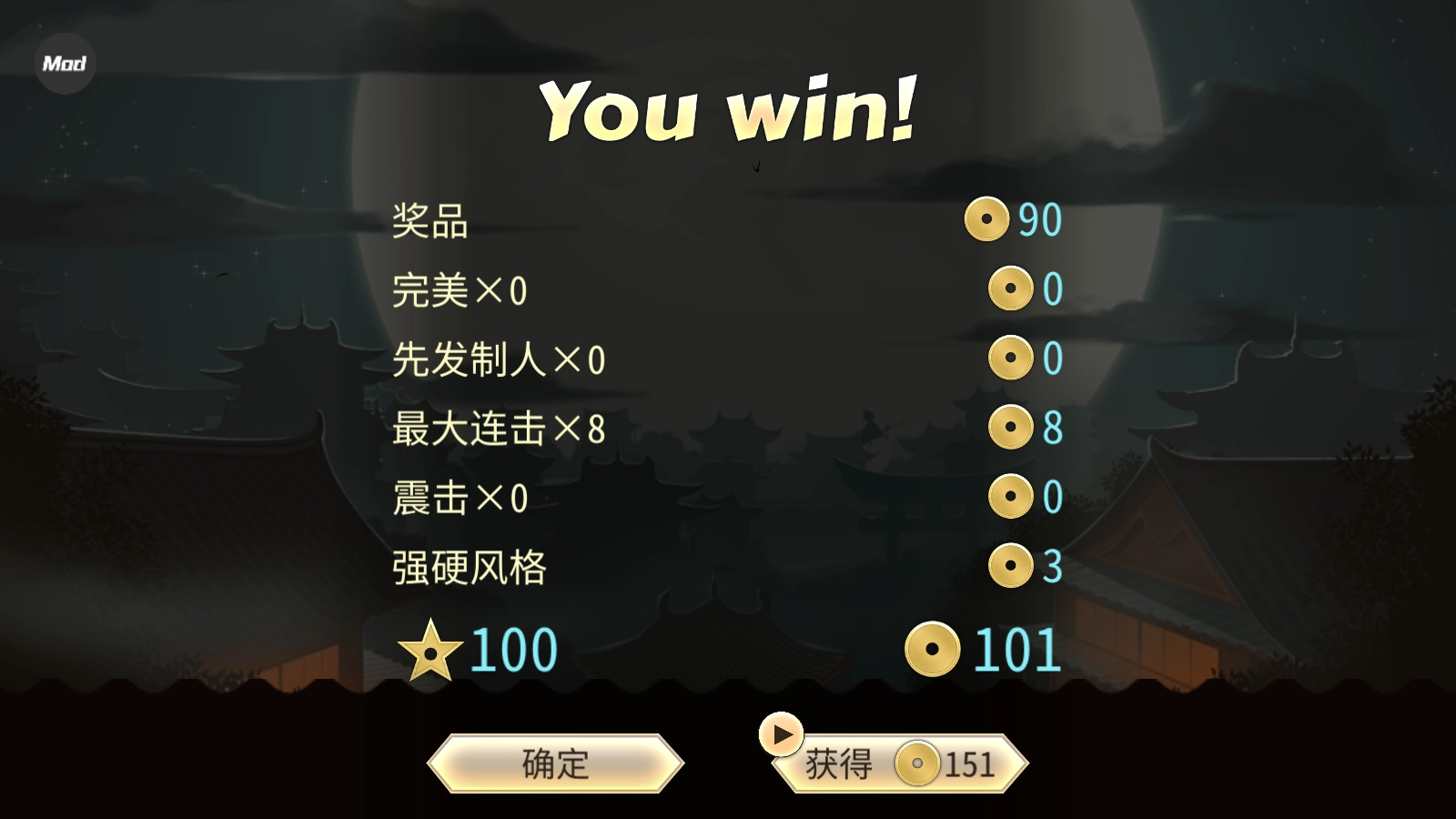 胜利后就能够收获奖励了。