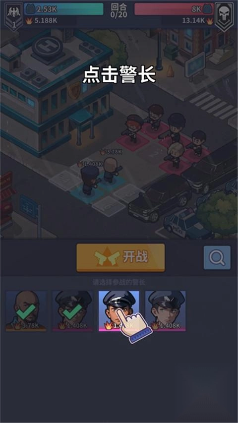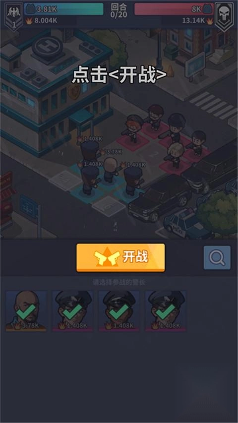 2、选好警长后点击【开战】按钮,即可与厘米阿尼的敌人展开对战。