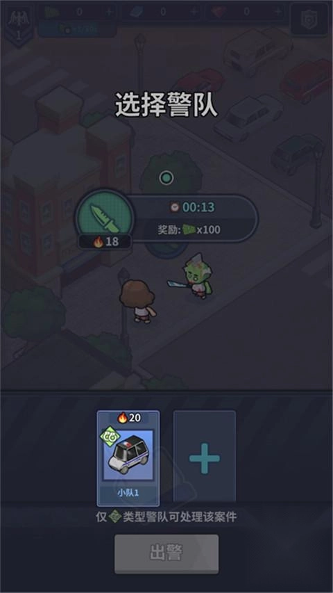 5、选定案件后,挑选需要出警的警队,确定警队后点击出警按钮