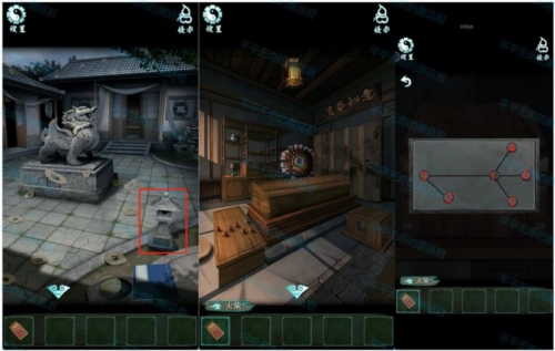 十、将青花瓷球放入石狮子爪下,获得正屋钥匙和画。