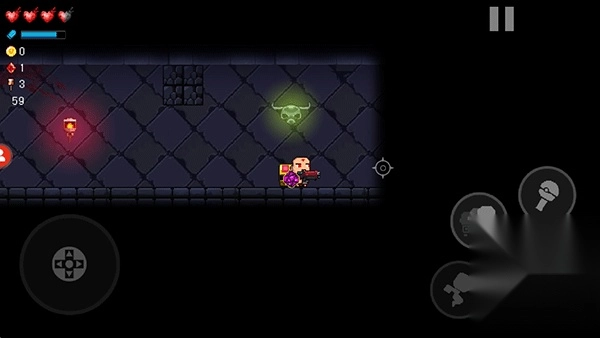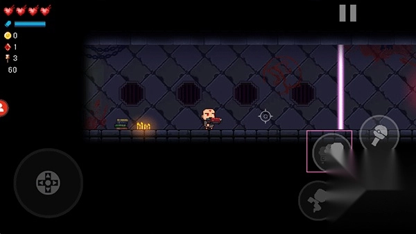 2、进入游戏后,使用左侧的摇杆能实现左右移动。当前方遇到无法穿过的光柱时,点击右侧的“瞬移”图标即可穿墙移动。