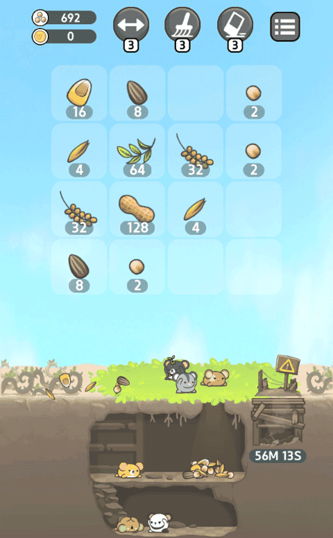 2、把格子中相同的图案合并起来,就能让仓鼠的粮食变得超级多。