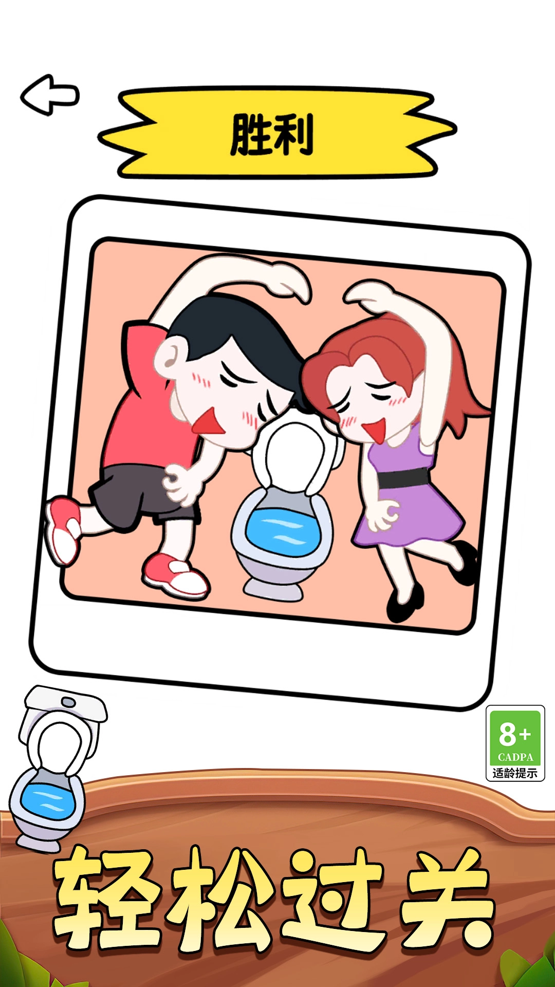 2、只需轻松滑动手指为角色搭建一座桥梁,就能让角色顺利上厕所。
