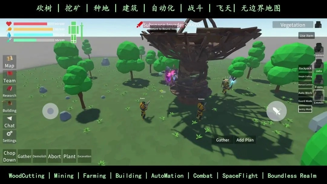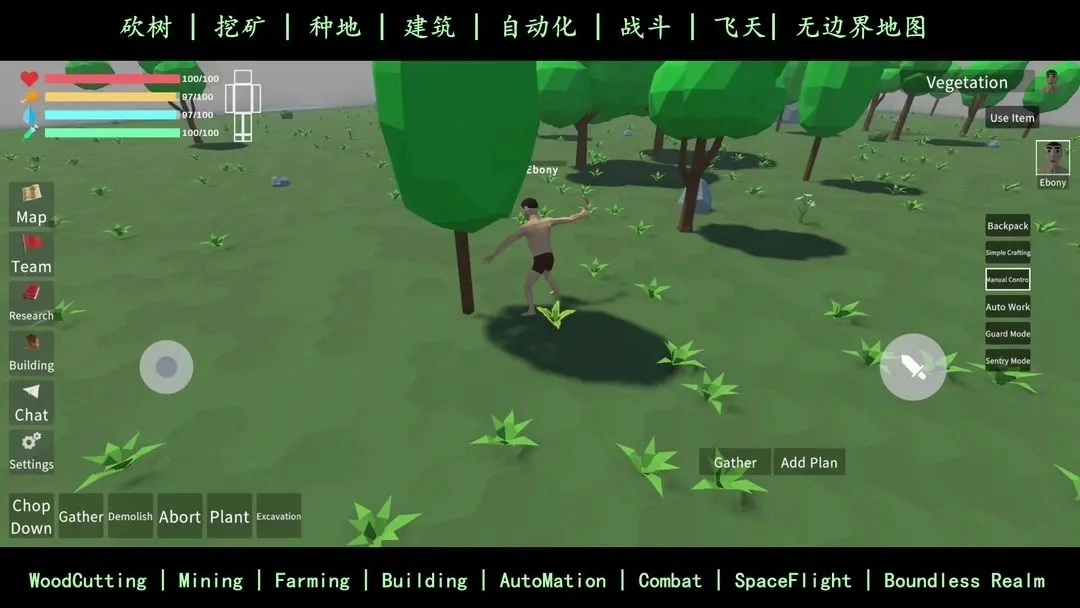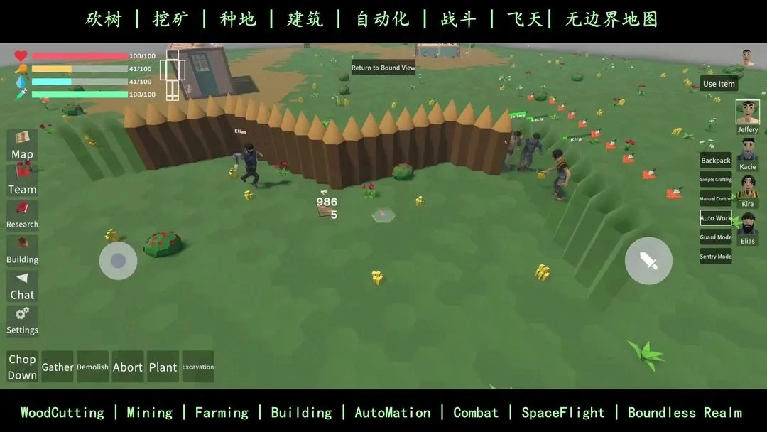 游戏里没有小地图,大地图基本形同虚设,跑着跑着就彻底迷路了,地图上连资源点都没做标记。怪物是随机刷新的,我好不容易花1000招募的工人,被野怪打死了——那工人就傻站着不反击。更气人的是野怪远程攻击范围还特别大,偏偏我当时还是裸装,碰到只能撒腿跑。而且连新手教程都没有,好多操作都得自己慢慢摸索,比如怎么让工人自动挖矿砍树、怎么让他们吃东西,结果没搞明白,工人就这么饿死了。就算设置了自动工作,他们也不会自动拾取物品,还得我一个个手动去捡。