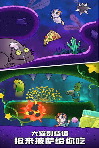 炮弹发射时会产生向后的后坐力,这时你得控制好方向,一路收集干鱼,最后顺利抵达终点。