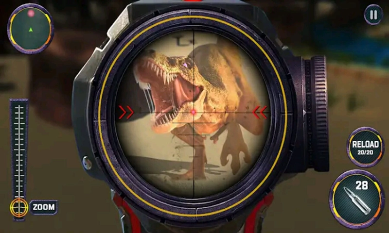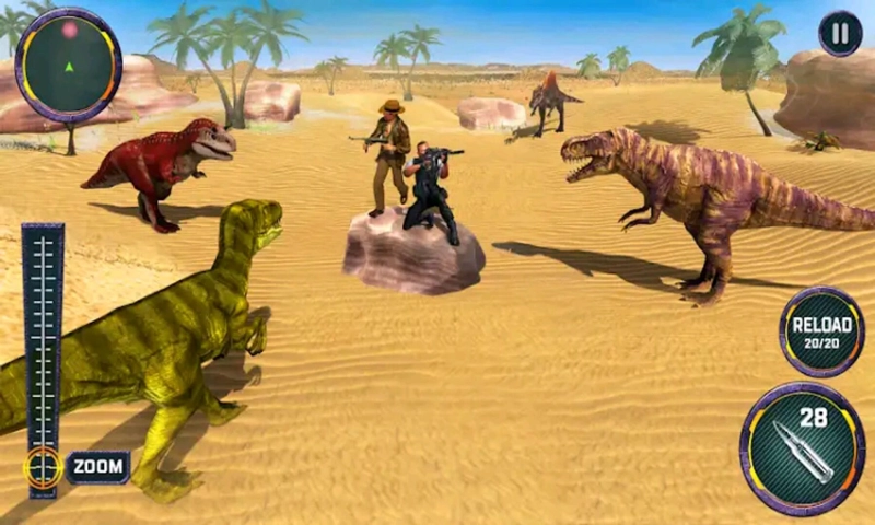 2、获取这款恐龙射击游戏,让你凭借精准的瞄准与射击能力生存至最后,并在这片丛林的恐龙生存射击游戏中击落目标恐龙;
