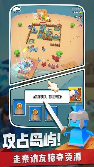 1、以清新可爱的卡通画风展现岛屿攻防战,玩法既轻松休闲又不乏策略深度