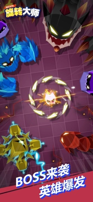 旋转大师是一款迷你动作RPG游戏,屏幕四周会不断涌现各种怪物,及时消灭小怪、清除障碍,能让你闯关更轻松。要小心体型庞大的Boss,每个Boss都有独特的特殊能力,击败它们可获得丰厚奖励。通过特定关卡还能解锁全新英雄,每个英雄都有专属攻击技能,持续升级强化他们,挑战更多关卡,你就能成为下一位旋转大师!