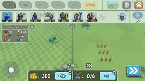 2、游戏的操作极为简便。单人战役采用闯关的形式展开,进入游戏后,玩家能够查看敌方阵营的状况,并按顺序部署己方队伍。具体操作是,只需点击上方任意一个兵种,接着点击空白区域,就能把该兵种部署在相应位置。要是想要取消部署,再次点击该兵种即可。