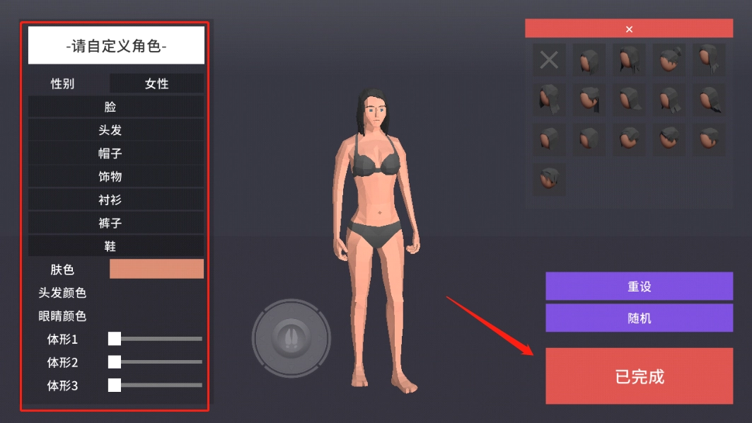 2、接下来,玩家要进行角色自定义操作,点击人物旁边的圆形图标,便能全方位查看角色。完成相关设置后,点击右下方的【已完成】按钮。
