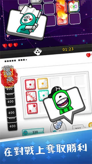 4、创新的骰子游戏玩法,带来真实趣味的操作体验,搭配别具一格的点击方式,让你能够投身卡通世界展开冒险。