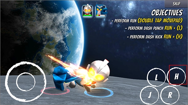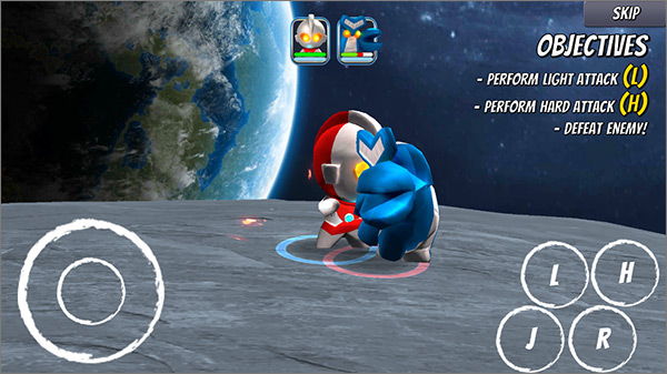 2、点击“ I ”按钮,能让奥特曼跳跃至空中,对怪兽造成伤害。