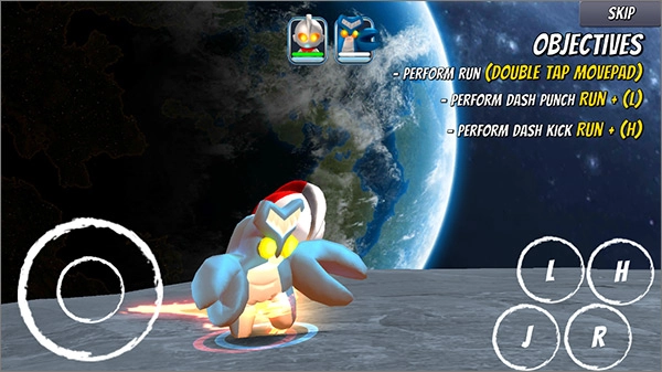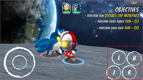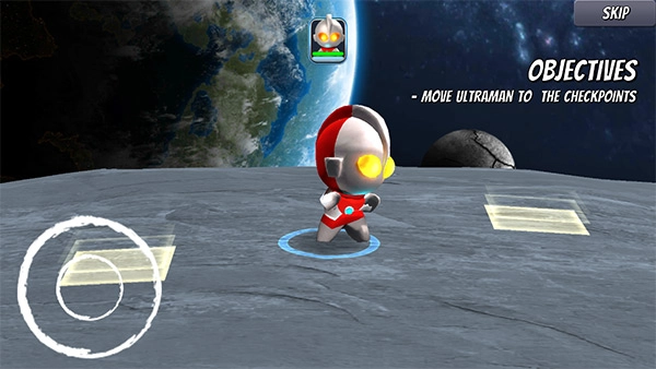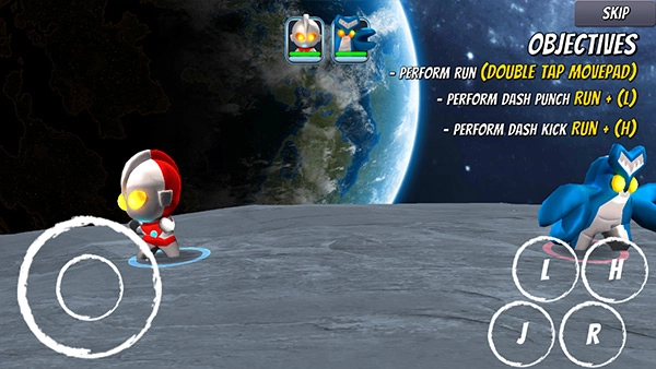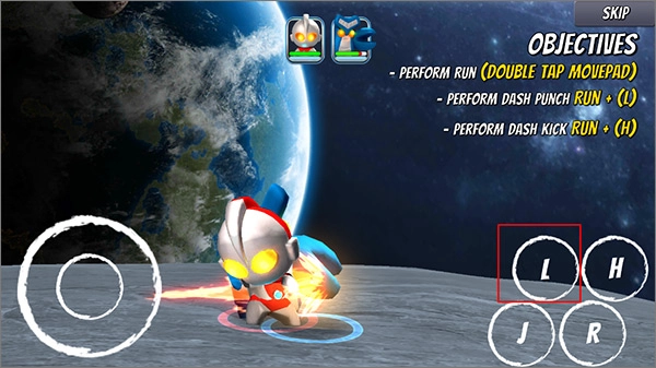 2、轻点 “I” 按钮,就能操控奥特曼进行跳跃动作。