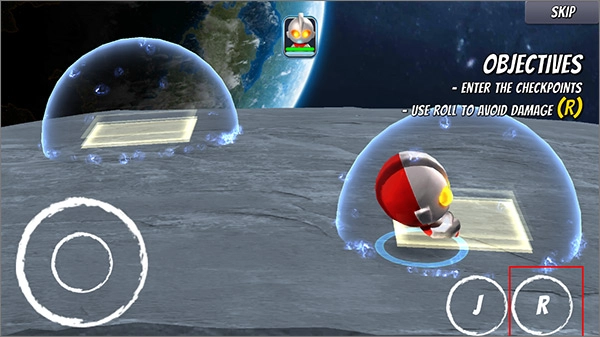 3、当玩家点击“R”按钮时,就能操控奥特曼翻滚到黄色区域。