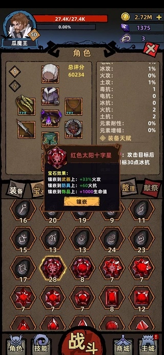 宝石分类:宝石主要有红、紫、蓝、黄、彩这五类,它们能够镶嵌在带有孔位的装备之上。由于镶嵌的目标装备各异,所产生的属性效果也不尽相同。举例来说,红宝石若镶嵌在武器上,能提升火攻属性;镶嵌于防具时,可增强火抗属性;而镶嵌到饰品上,则会增加生命值。