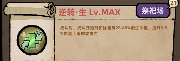 技能解析:开局首波扣除一定生命,同时提升相当于3.5%最大生命值的攻击力。虽说开局会损失少量生命值,但这并无大碍,关键在于能够增加攻击力,对于物理流派而言,无疑是最佳选择。