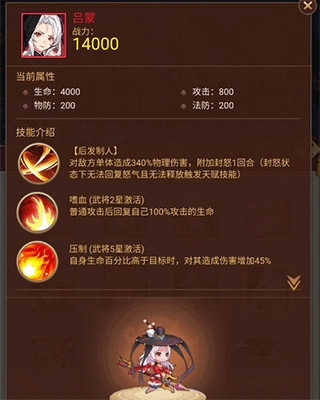 吕蒙作为红色武将,具备极高的单体物理伤害能力。在受到攻击时,他会获得封怒的负面状态。尽管封怒属于负面状态,但对吕蒙而言效果极佳。结合先手减怒机制,能打出相当不错的控制效果,可持续削弱敌人怒气,使敌人无法释放技能。 太史慈同样是红色武将,其技能能够攻击敌方后排,不仅会造成大量物理伤害,还额外附带35%的眩晕效果。太史慈实力强劲,是上述能直接攻击后排的英雄,可无视前排,直接对敌方后排构成威胁,输出十分恐怖。