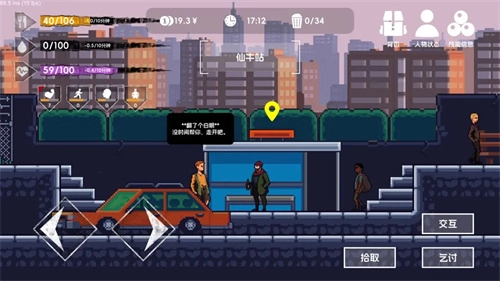 1、游戏开始后,玩家径直向左走,一路上实施乞讨行为并翻找垃圾桶。要特别留意,垃圾桶里的食物千万别吃,吃了很容易生病。