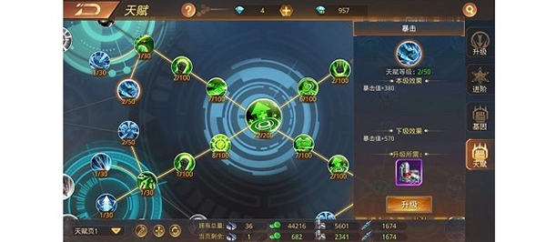 2、天赋分为绿色、蓝色、紫色这三种类型。而肾上腺素、细胞激素、神经激素分别能够用于升级绿色、蓝色、紫色天赋。