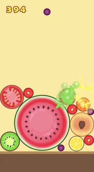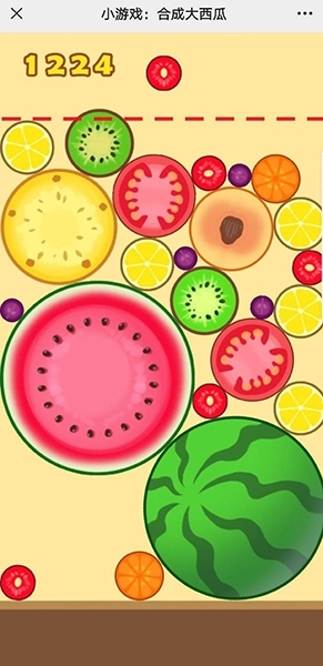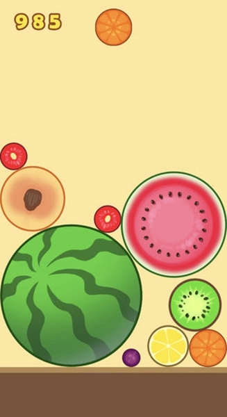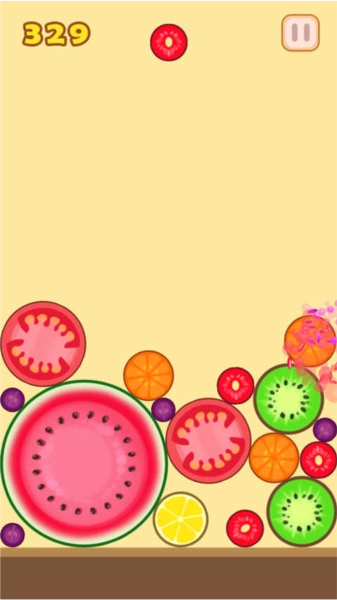 在游戏当中,每一个回合都会随机出现一种水果。小伙伴们能够通过触碰相同的水果来提升其品阶,不同种类的水果还能够持续叠加。一旦水果堆叠的高度超过了及格线,游戏便宣告失败。此游戏的目标是合成出大西瓜,要知道西瓜分为半个和完整的两种形态,小伙伴们只有合成出两份半个的西瓜,才能够成功合成出一个完整的大西瓜。